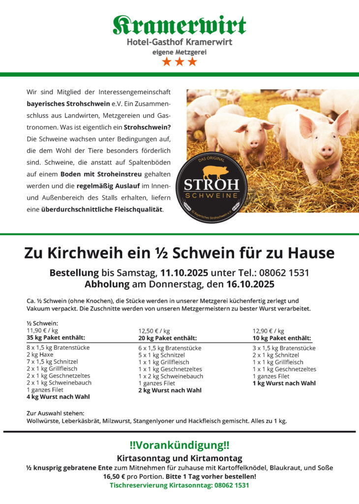 Ob als Zwischenstopp auf dem Weg nach Italien, Kroatien, Österreich oder als gemütliche Unterkunft für Ihren Urlaub in Bayern – der Kramerwirt bietet Ihnen herzliche Gastfreundschaft und bayerische Tradition.
