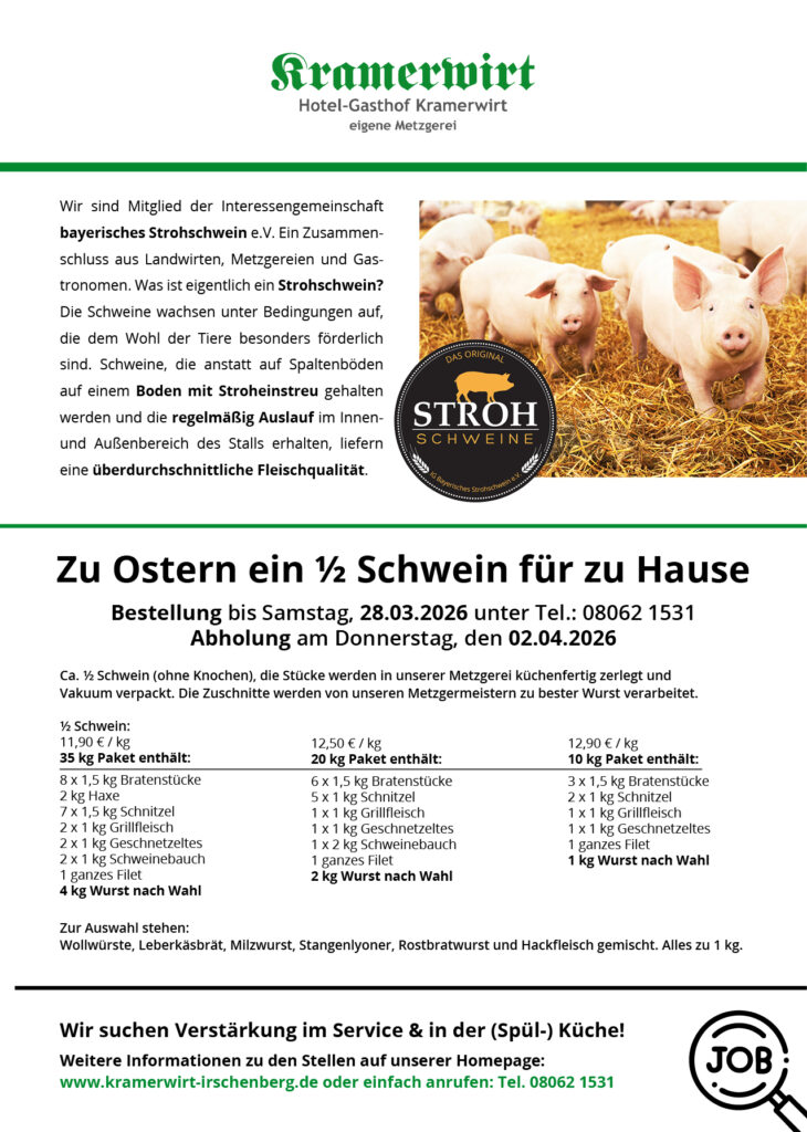 Ob als Zwischenstopp auf dem Weg nach Italien, Kroatien, Österreich oder als gemütliche Unterkunft für Ihren Urlaub in Bayern – der Kramerwirt bietet Ihnen herzliche Gastfreundschaft und bayerische Tradition.